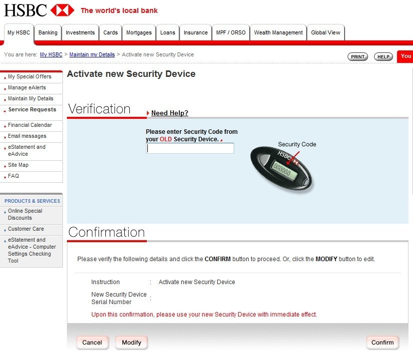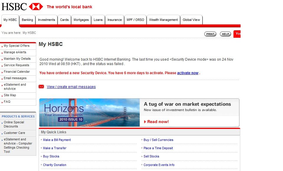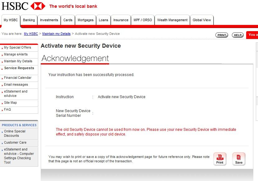 Step2-My HSBCの画面を開くと、セキュリティデバイスのアクティベーションをするようにメッセージが表示されています。