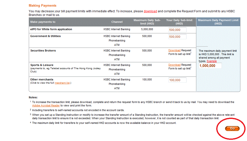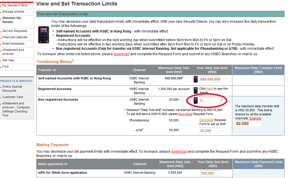送金先登録をすれば1日あたりの送金限度額を100万香港ドルまで自由に設定する事が出来ます。