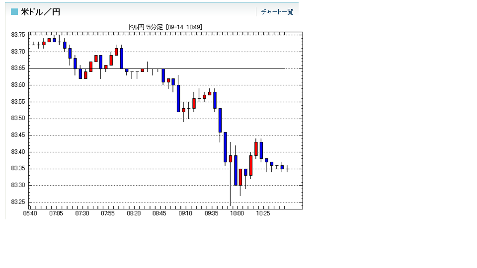 14日の東京外国為替市場の円相場は一時、1ドル=81円28銭まで上